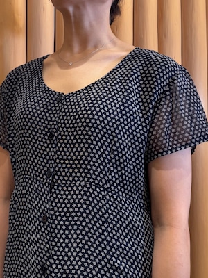 OP1-1 USED SMALL GEOMETRIC PATTERN DRESS -NAVY-