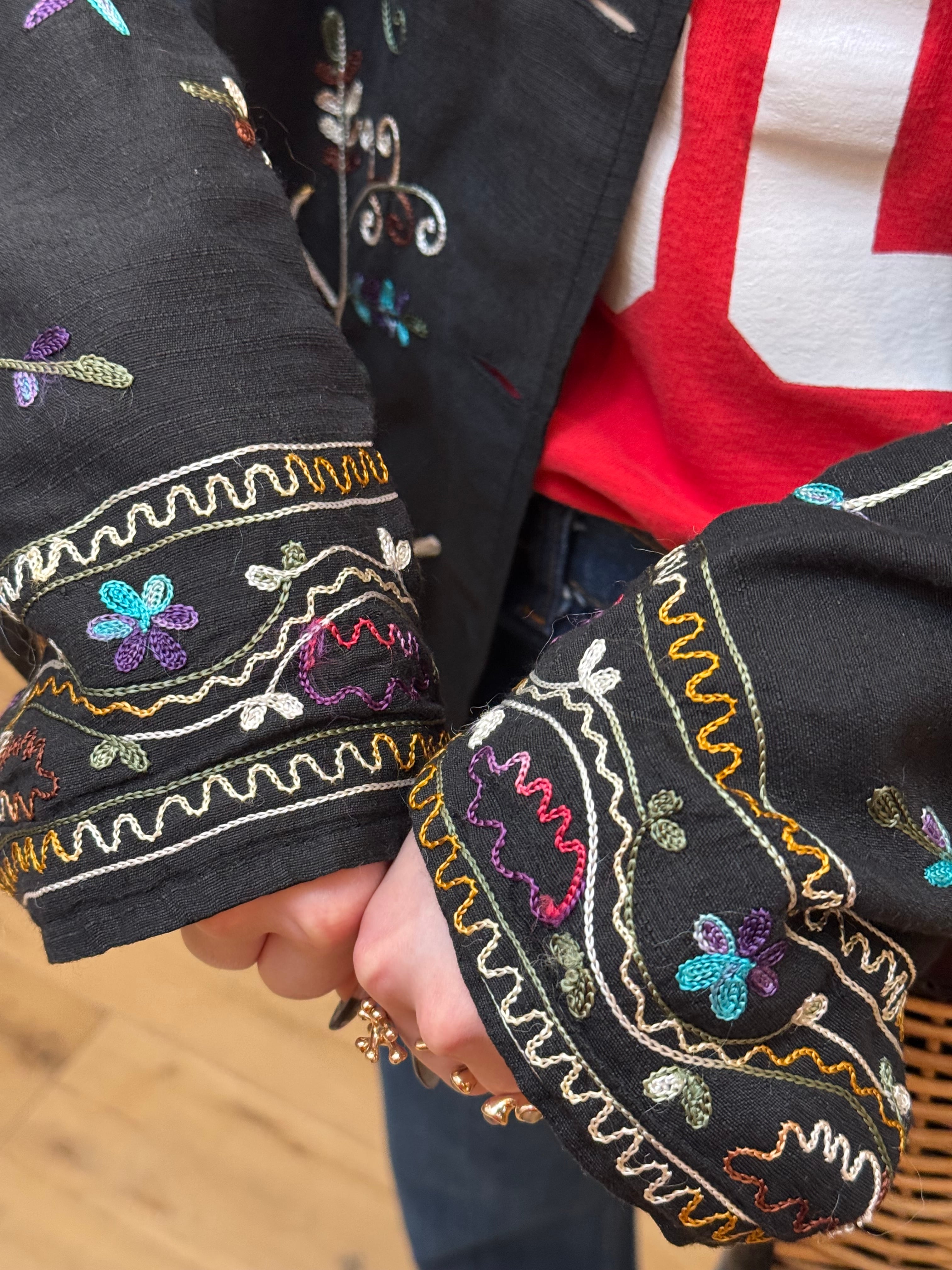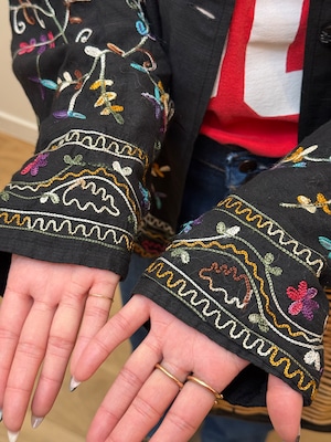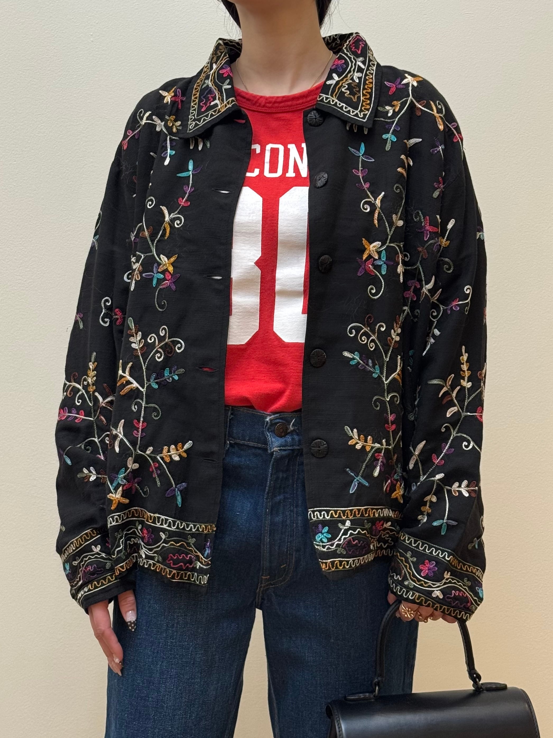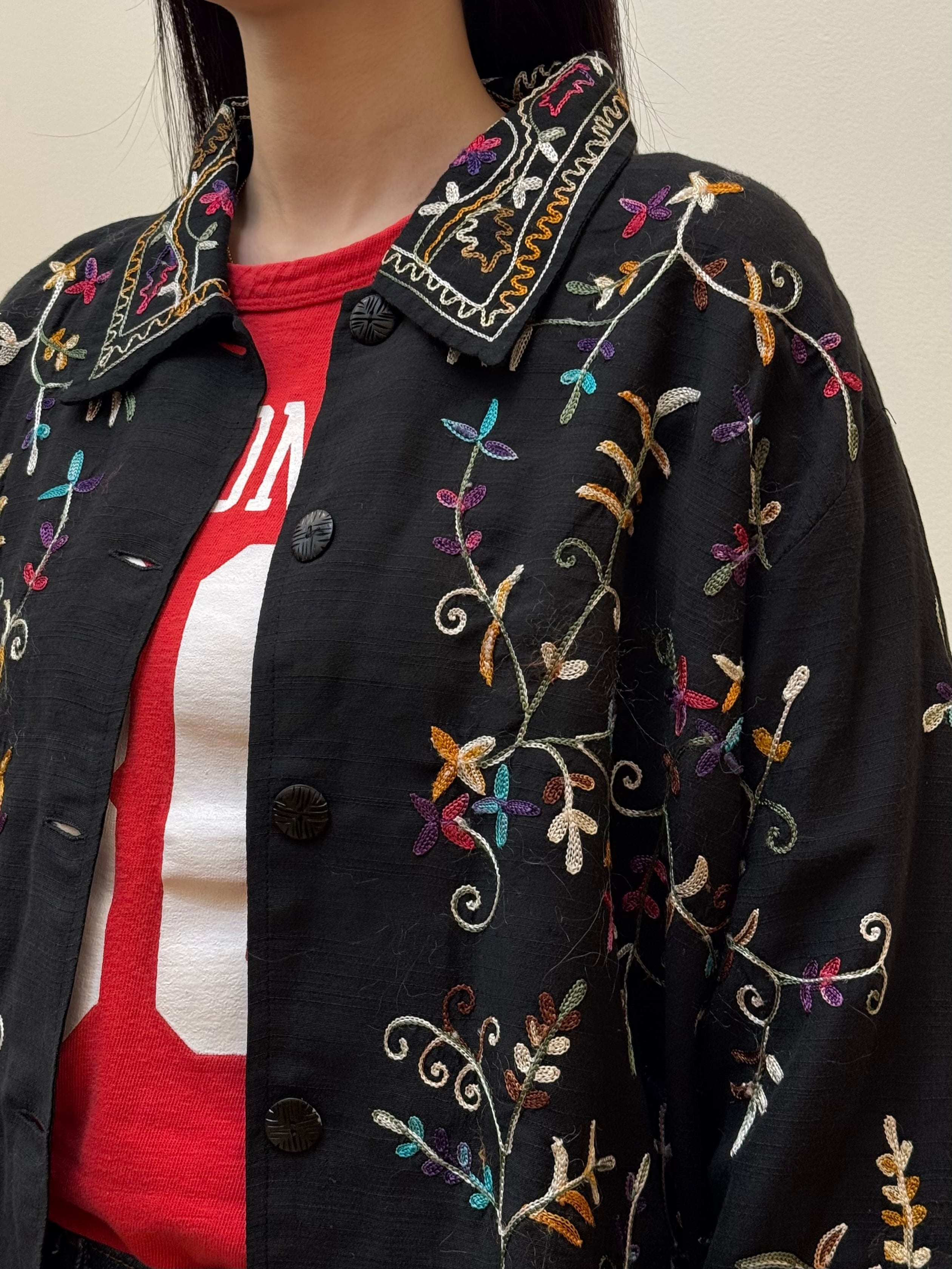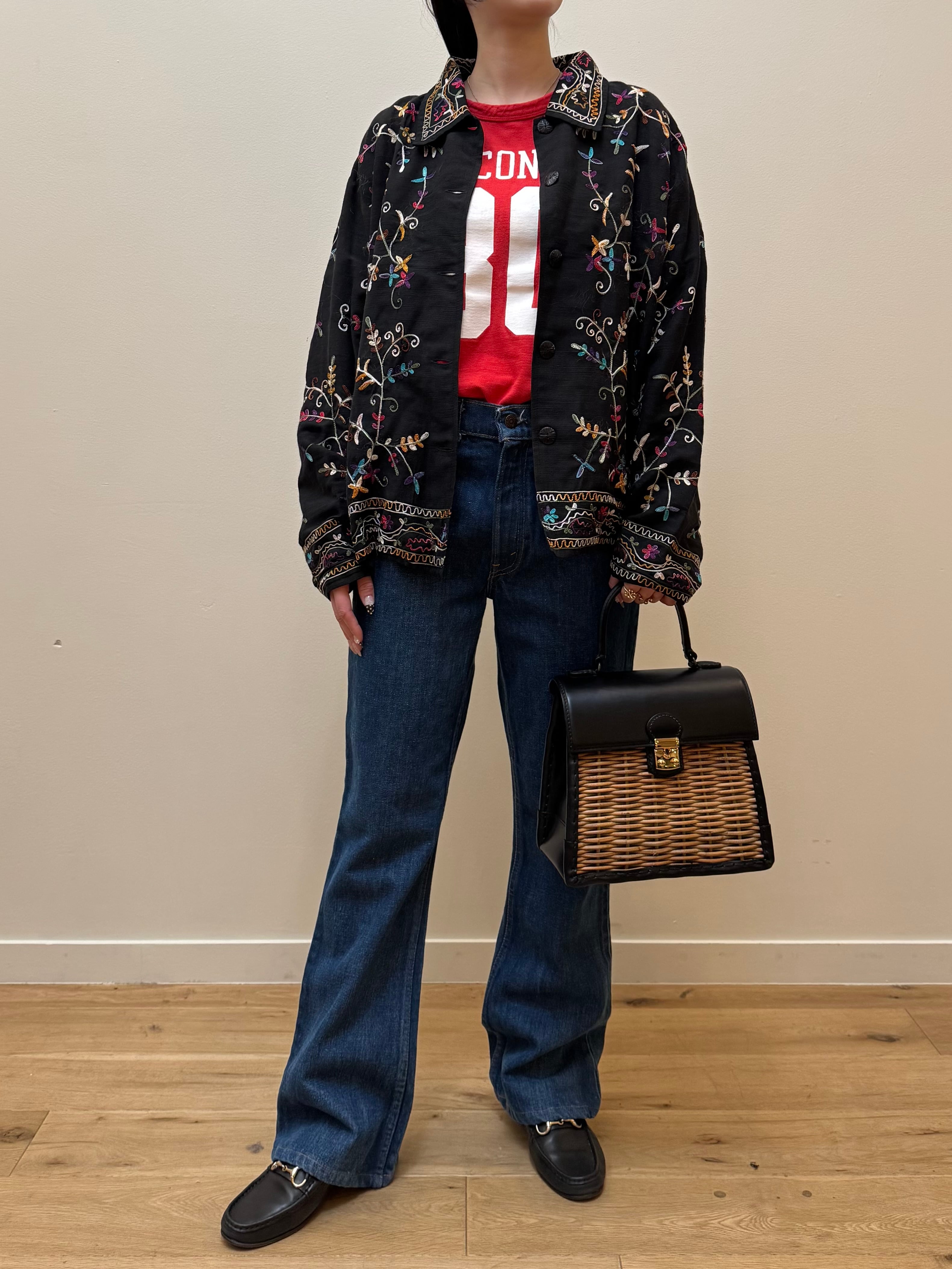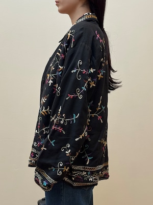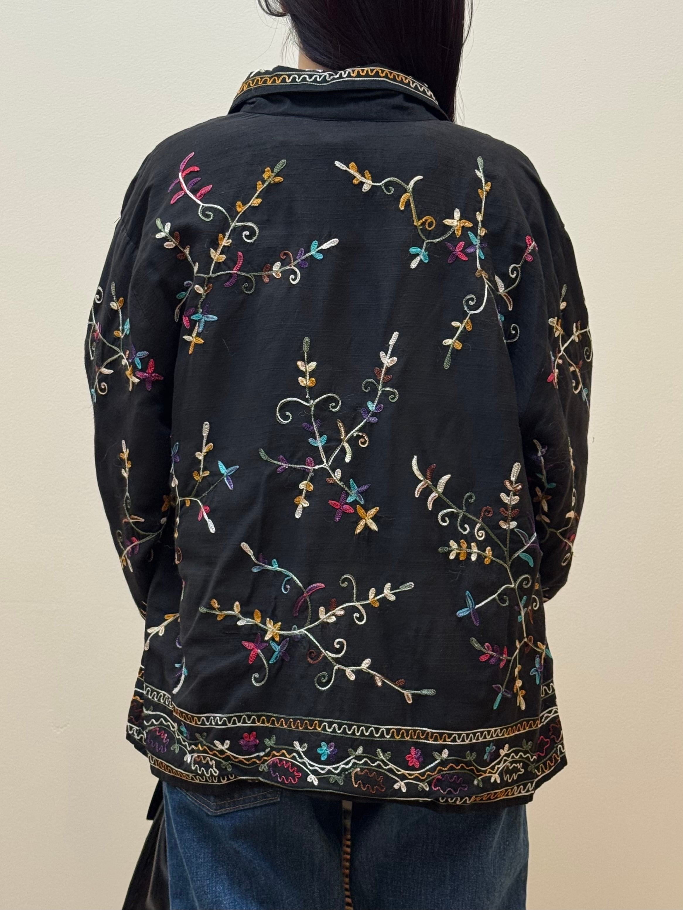 BL2-5 USED EMBROIDERY FLOWER SHIRT -BLACK-