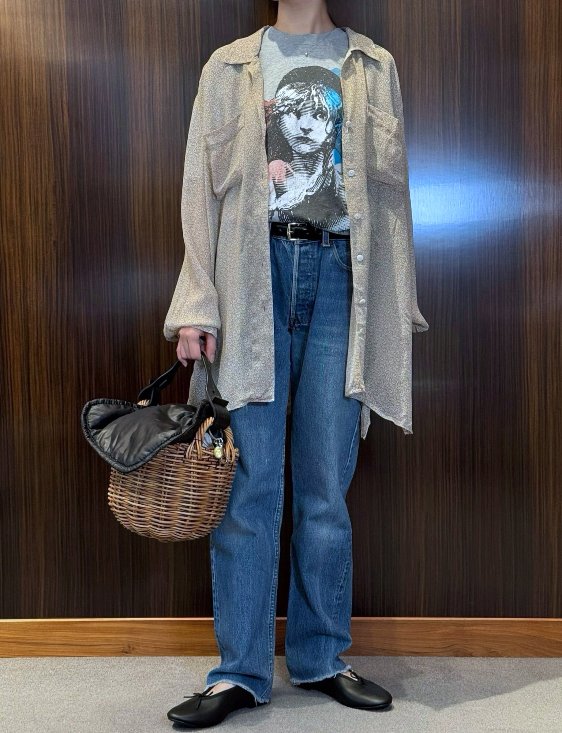 BL3-3 USED FLOWER SHEER BLOUSE -BEIGE-