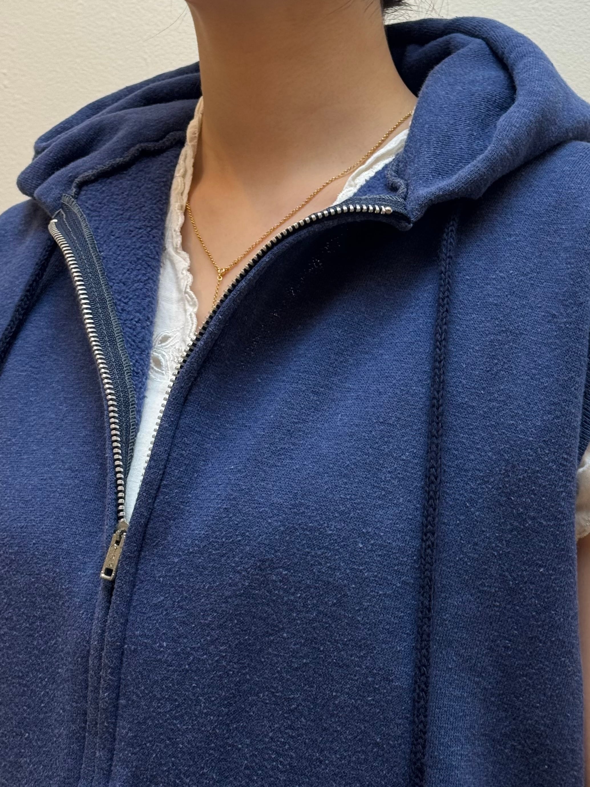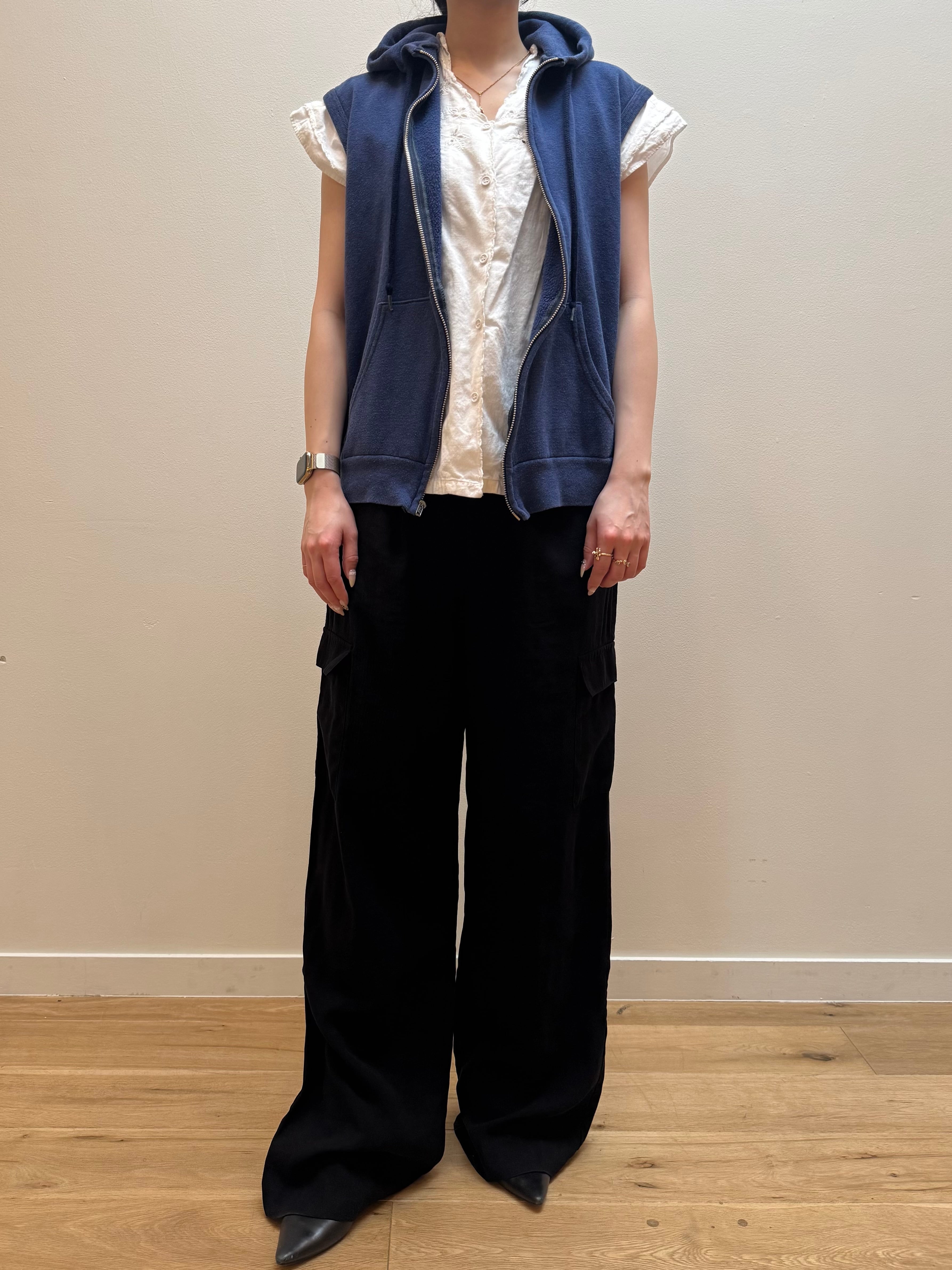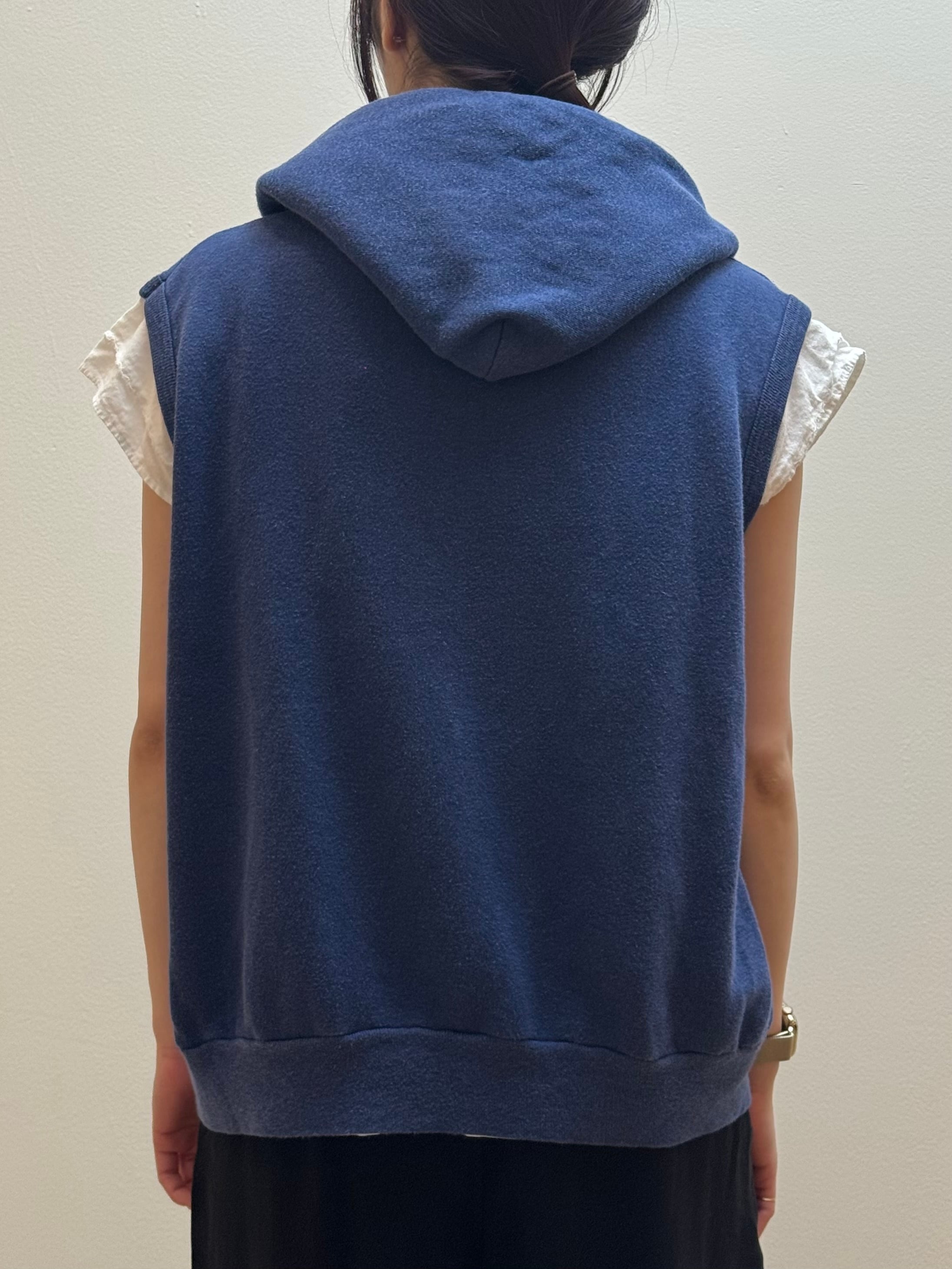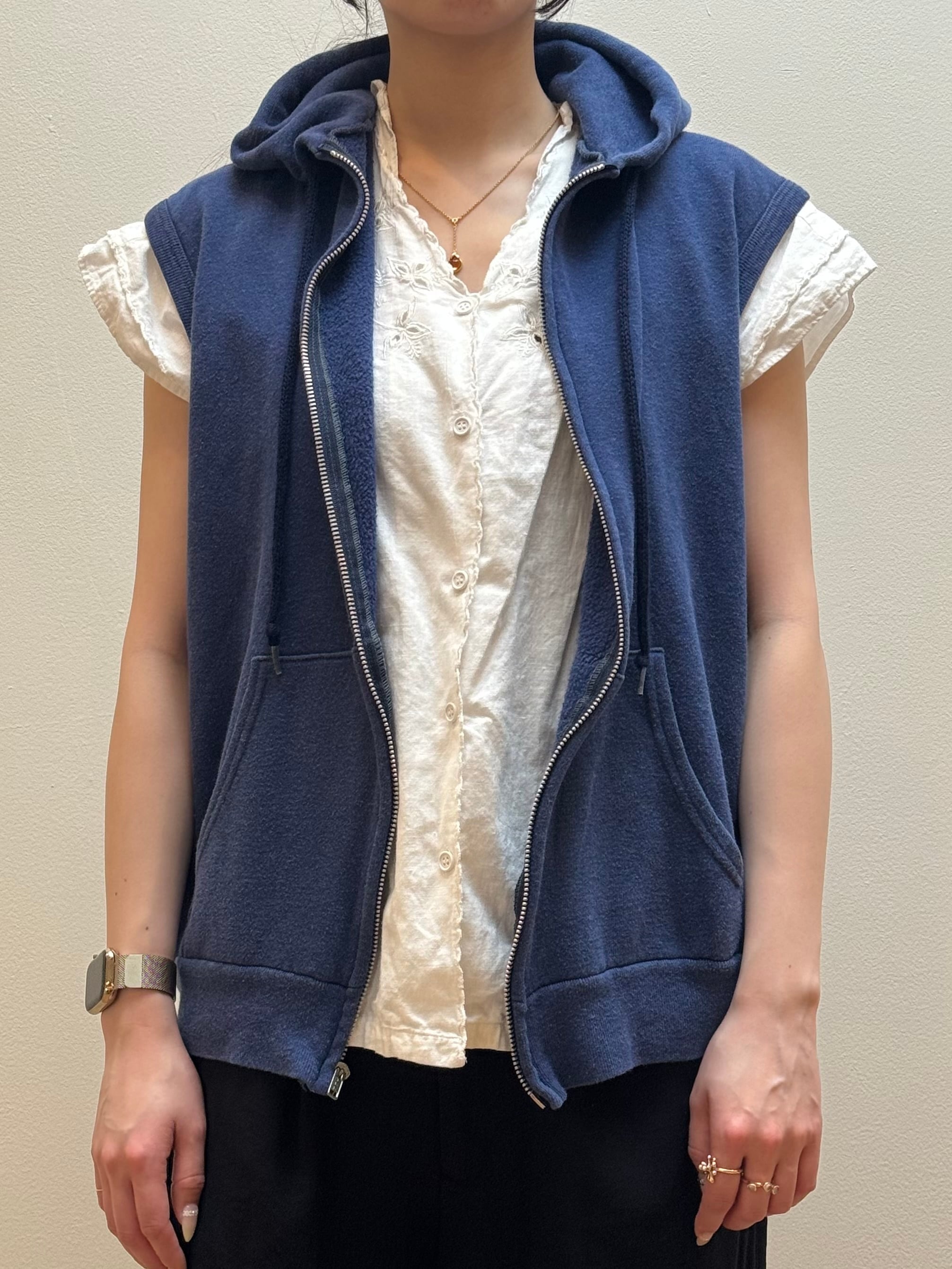 CU4-29 USED SLEEVELESS ZIP HOODIE -NAVY-